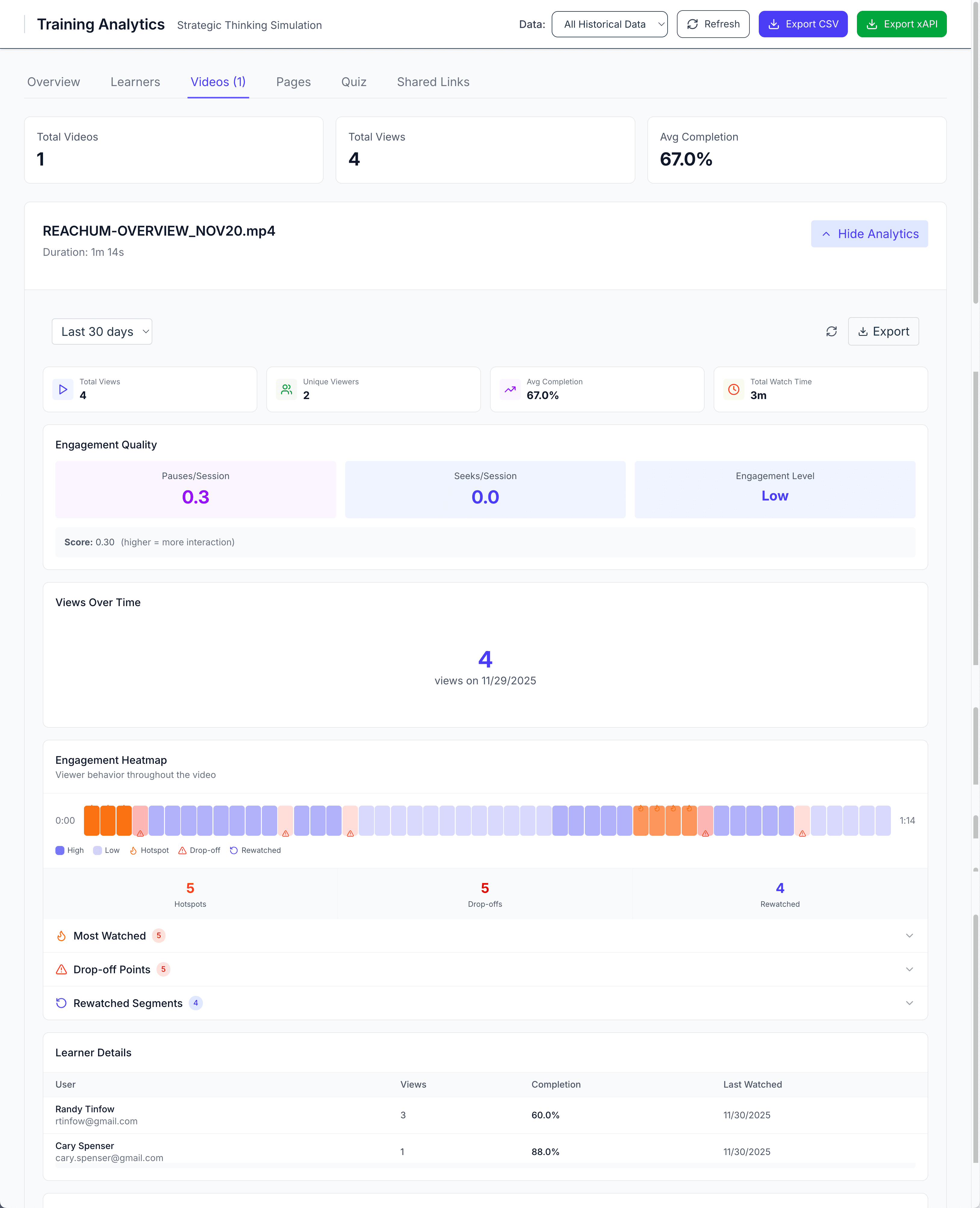 REACHUM is the first post-SCORM learning platform. REACHUM•AI unifies enterprise learning stacks to solve the chronic inefficiencies of legacy systems. Deep, actionable data tracks competence and connects learning activities directly to measurable business outcomes and ROI.